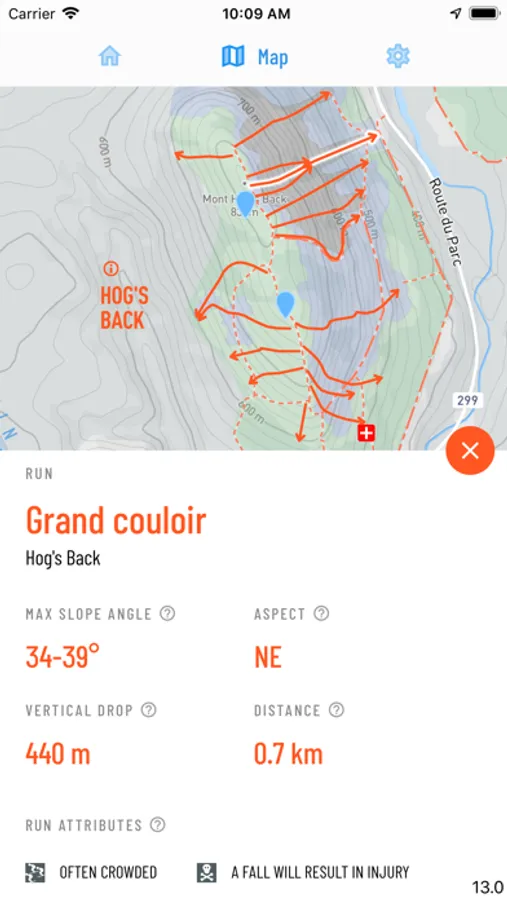 - The ascents and runs routes with information on them (name, difficulty level, elevation gain, characteristics and photos);