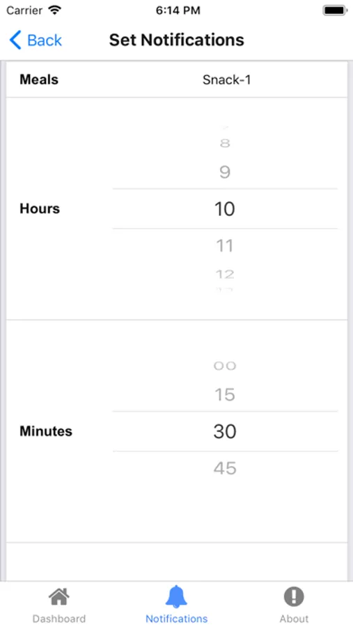 * Notifications Reminding You of Meal Times and the Ability of Adjusting the Notifications Hours.