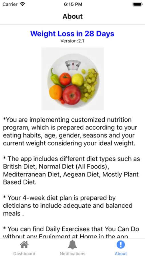 Special diet plans with adequate and balanced meals set daily for 28 days are available in this Weight Loss application.