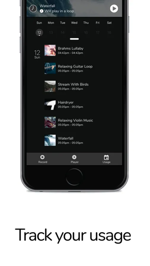 Every time you complete playing a track with our sleep noise app, we add it as an entry in your sleep usage calendar. You can use the sleep usage calendar to view how you’re using the app, and more importantly, you’ll be able to observe patterns in yours or your babies / loved ones sleep.