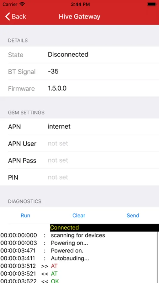 This application can be used to check the reachability and current status of hive monitoring sensors, as well as to check functionality and configure some aspects of the GSM gateway and optionally send a diagnostic report to the manufacturer for analysis.