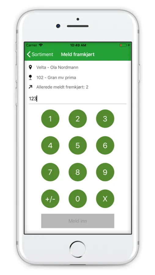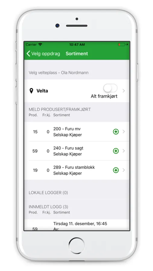 Framkjørt er en app for registrering av framkjørt- og produsertmeldinger i virkeshandelssystemet hos Skog-Data.