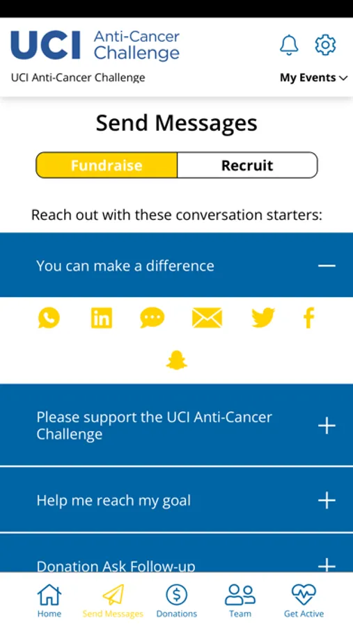 Do your fundraising on the go with your the UCI Anti-Cancer Challenge mobile app! Update your page, send emails and check your progress – all from the palm of your hand. You can also track your rides, runs or walks to earn badges, prizes and bragging rights by connecting to Apple HealthKit. The UCI Anti-Cancer Challenge mobile app is a great tool to track your fundraising progress, and to keep current on all Challenge news!