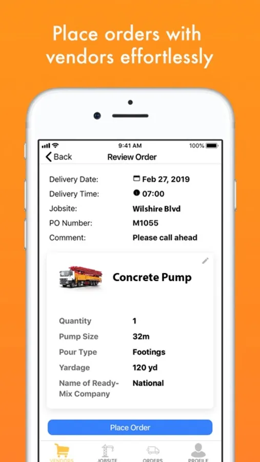 Use Construct to better manage your construction sites and place orders with your vendors in seconds.
