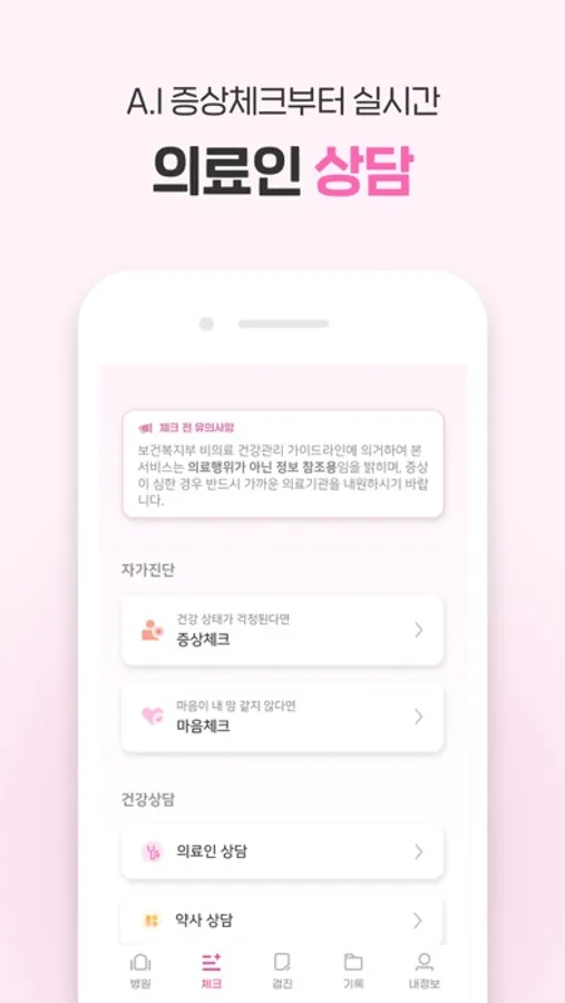 - 마이크 : 증상체크 음성 인식 및 화상 상담을 위한 기능 제공