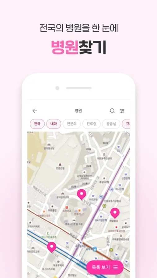 - 위치 권한 : 현재 위치 기준 정확한 병원, 약국, 검진센터 등의 정보 제공