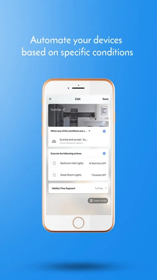 •Automate your smart devices based on weather, temperature, time, device status and other conditions.