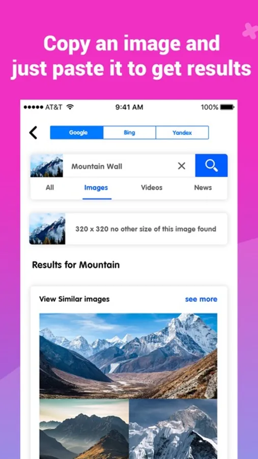 This app lets you search by images using ( Google, Bing and Yandex: Search Engines ) instead of keywords.