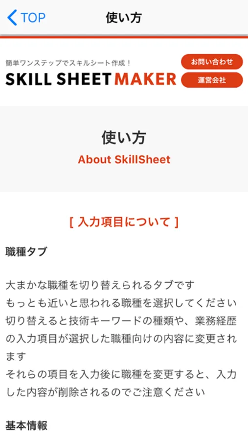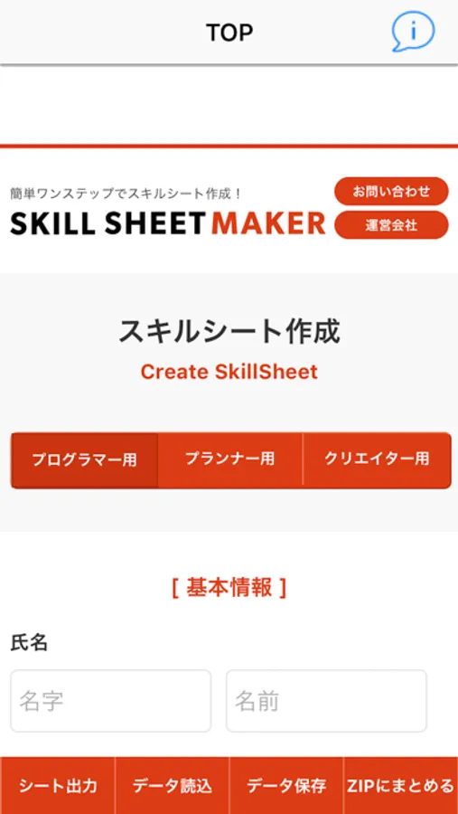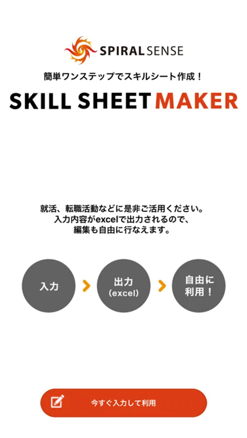 スキルシートメーカーは表示された項目を入力するだけで整形されたスキルシート(職務経歴書)を作成し、Excelファイル(.xlsx)としてダウンロードすることができるアプリです