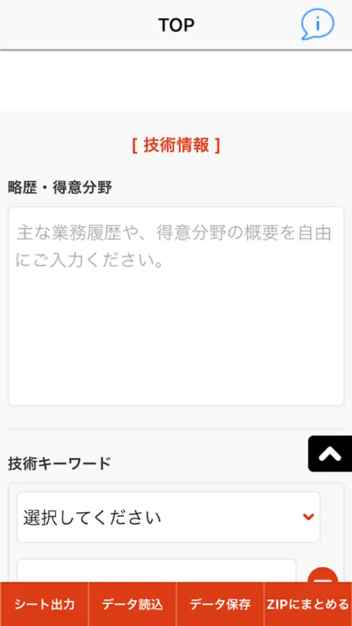 そのため、一度作成したスキルシートの更新が必要になった場合、以前保存したデータを読み込めば続きから入力することが可能です