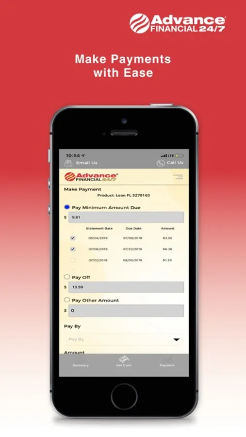 Get the AF247 app for 24/7 access to cash anytime, anywhere. The Advance Financial app gives you an at-a-glance snapshot of your loan so you always know exactly how much cash you’ve got in your account. Other features include making payments, knowing your balance and starting an application online, then finishing online for fast approval and same day funding.*