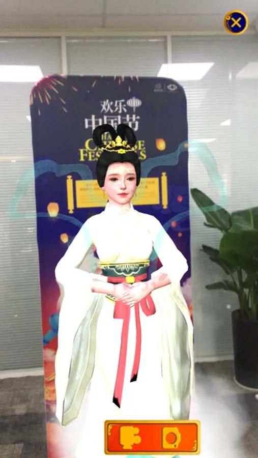 结合AR增强现实技术,扫描不同的AR卡片,3D年兽、门神、嫦娥、