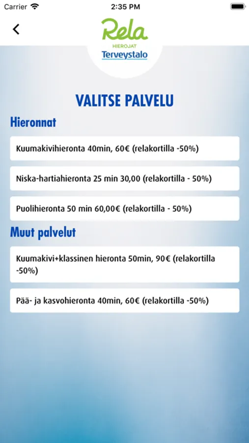 Rela-hierojat on Suomen laajin hierontaan keskittynyt ketju ja alansa markkinajohtaja. Toimintamme kulmakivi on kanta-asiakkuus, jolla saat kaikki hieronnat puoleen hintaan! Tämä sovellus tuo sekä kanta-asiakkuuden että muita olennaisia toimintoja suoraan puhelimeesi.