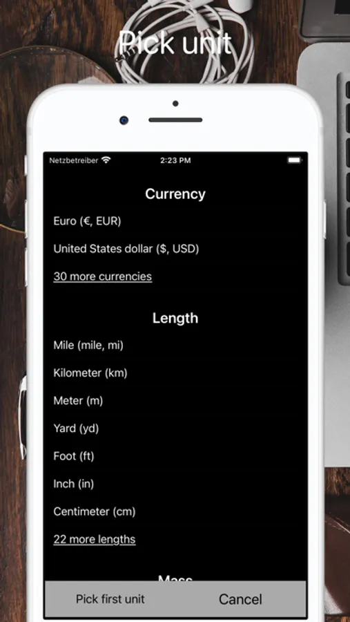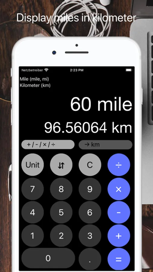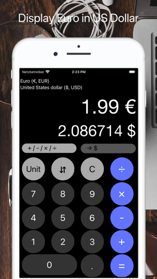 Shows the conversion of different units of measurement and currencies. Can also be used as pure calculator.