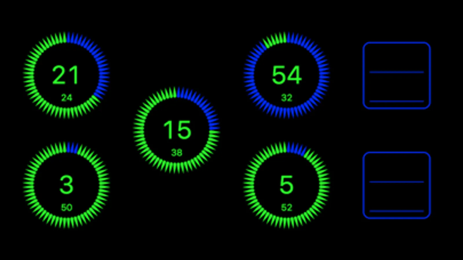 The settings section allows you to change the ring layout or change the alarm sound to one of many tones and rhythms. Settings can be found at the bottom right of the time selection grid.