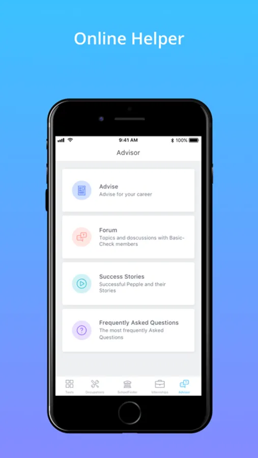 The basic check model is designed as an iterative process, which will support the users (pupils,students, job-seekers, etc.) throughout different stages of their life, through provisions of: Assessment tools for career planning, School Finder Interface, World of Work interface, Mapping of VET offers in the country, Internship Finder interface, Skills-matching tools, Tools for customized online counselling and career advice.
