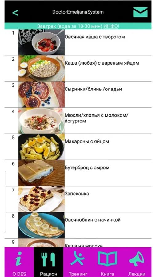 1. РАЦИОН ПИТАНИЯ DES с 28 вариантами блюд для каждого из приемов пищи, можно выбирать абсолютно любой. Из них сотни возможных комбинаций меню, много рецептов. Объяснение для каждого из приемов пищи.