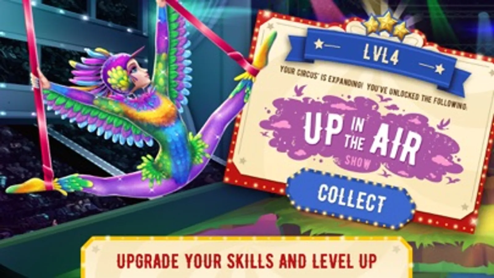 > Level up your circus to unlock more acts, more moves, more costumes, more everything!