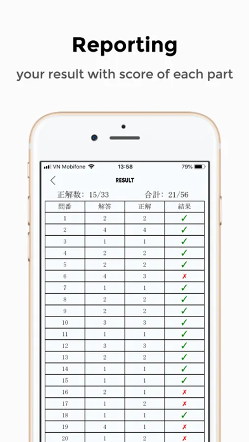 - After completing each test, you can view the results (number of correct answers, points, levels, tables answers ..)