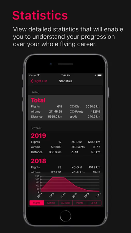 Gaining information about how you have progressed during your flying career has never been so easy. Rogallo BlackBox will present you a variety of statistical information in a very compelling and intuitive way. That way you can understand your progression as a pilot.