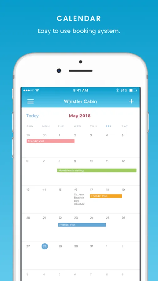 Calendar - Easy to use booking system with color-coded display for each member and automatic email notification for new bookings.