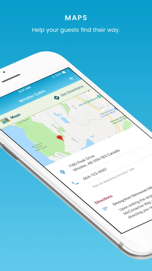 Maps -Help your guests find their way with customizable directions and a Google Maps display.