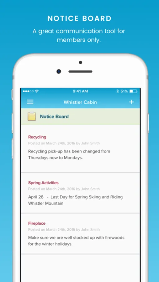 Notice Board - For Members only, a great communication tool to post reminders for supplies, events, repairs, etc.