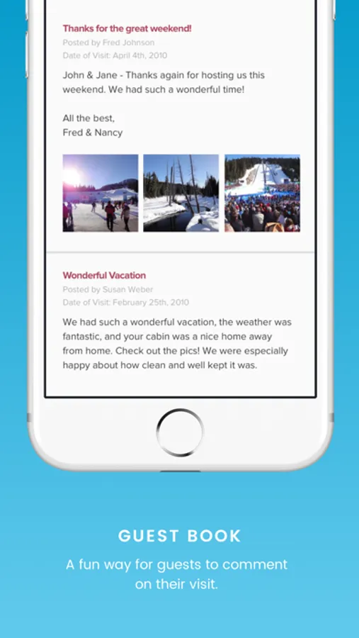 Guest Book - A fun and unique way for guests to comment on their visit. Guests can add up to 5 photos each.