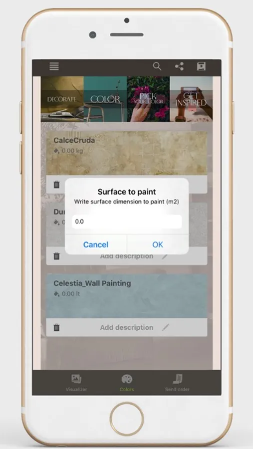 Share your project via one of the apps on your device. Buy the complete version of Decorizer by Novacolor for just € 3.99 to have the possibility to read any color using the NOVACUBE and identify the most similar shade among our finishes. You will also have the possibility to send an order to your nearest dealer, geo-localized on the map, and create your own list of favorite dealers.
