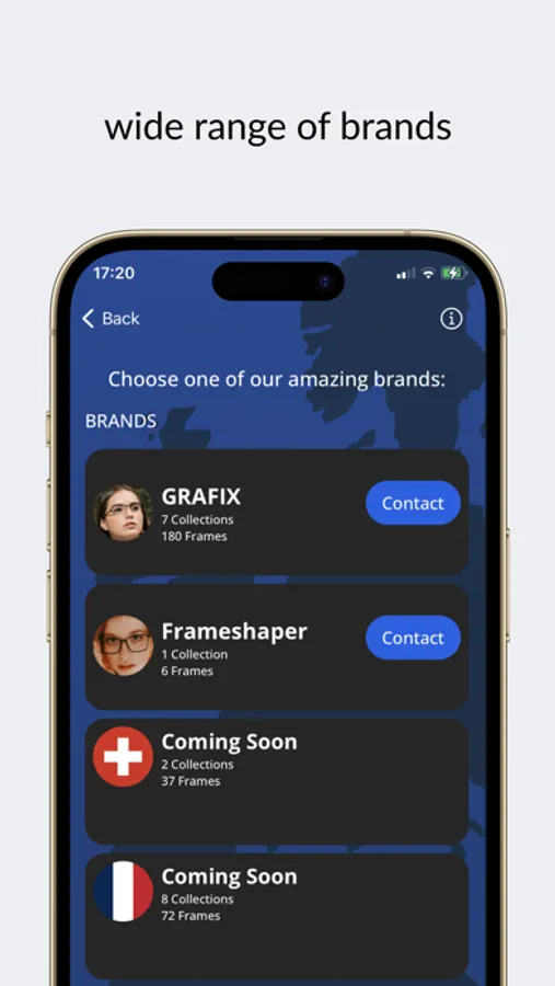 Attention: The virtual try-on function is just for authorized opticians visible. Everyone else can see only the collection menu.