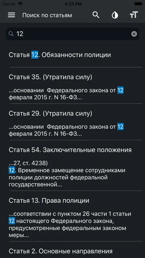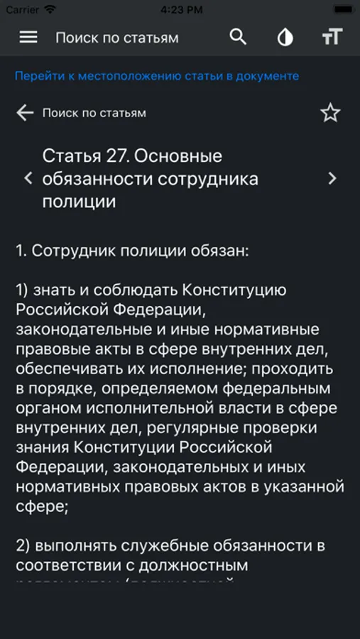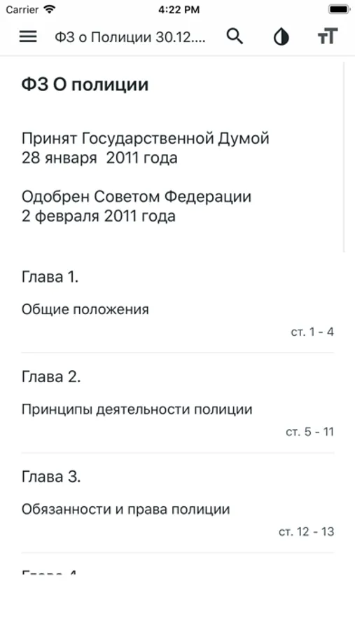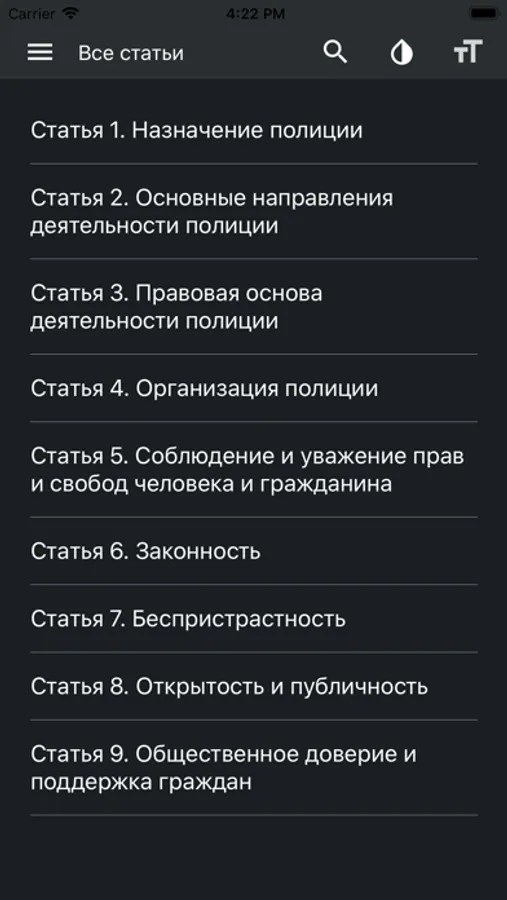 Перелистывание между статьями вправо-влево, аналогично разделы и главы