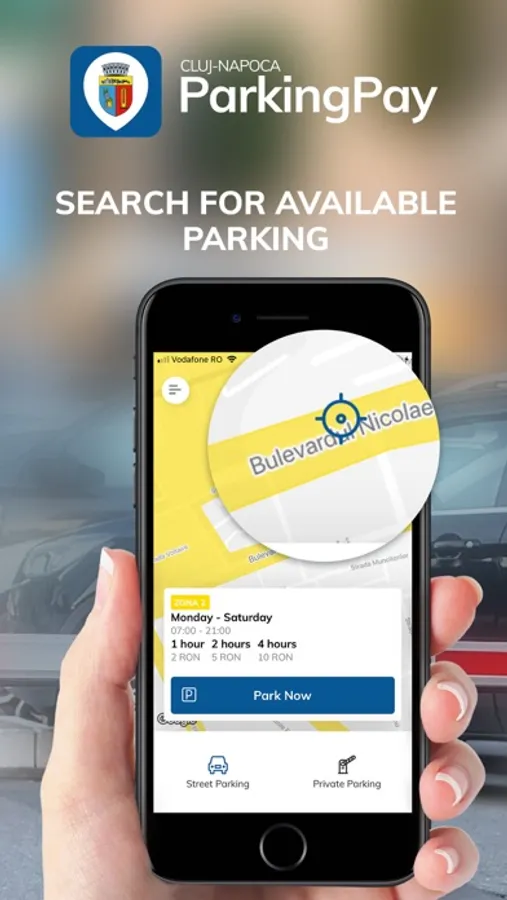 Aplicația Cluj Napoca Parking Pay facilitează plata parcărilor stradale prin intermediul cardului bancar, în zonele special marcate și reglementate în acest sens de către Primăria municipiul Cluj-Napoca.