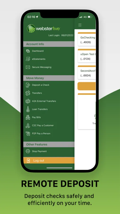 • C2C Pay a Customer: quickly transfer money between your account and a friend’s Webster Five account