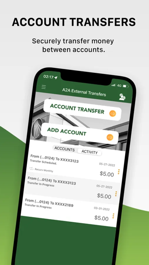 • A2A External Transfers: transfer to and from a non-Webster Five account within 1-2 business days