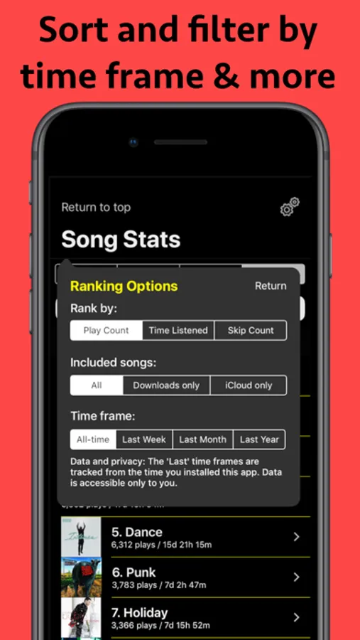 Rank and track your Apple Music listening habits by song, artist, genre and more!