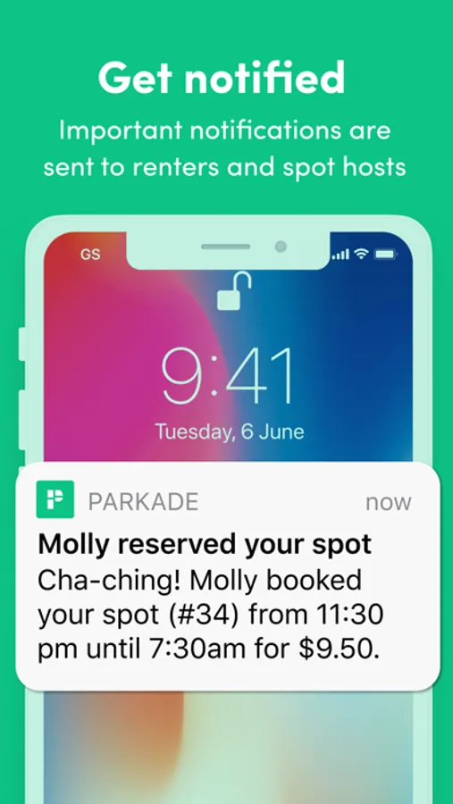 - Notifications. Both renters and spot owners receive notifications via push and email of important events, like reminders at the end of your reservation.