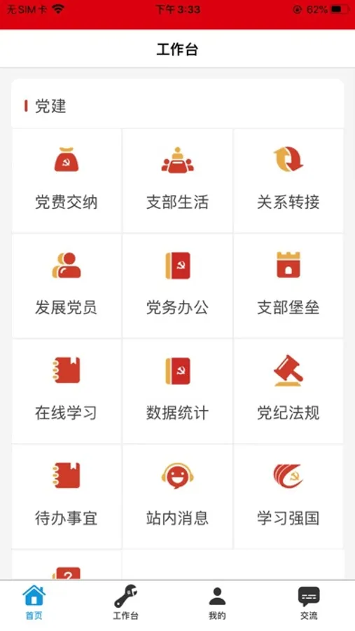 “先锋党建” app提供党建业务全流程管理,包括发展党员、关系转接、党务办公、组织生活、支部堡垒、资源共享、在线学习、新闻资讯、线上活动、交流服务、数据分析等功能。