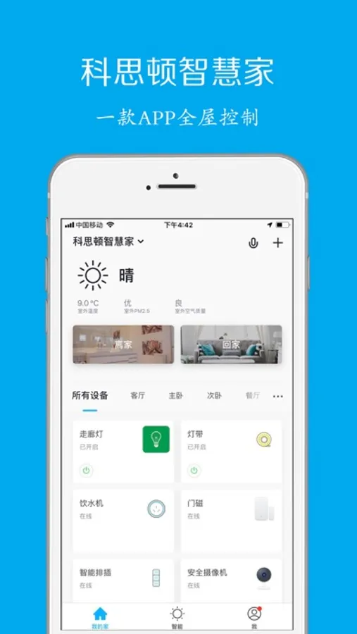 科思顿家是全屋控制软件,可以远程控制智能家居应用,智能语音进行控制,产品还可以广泛覆盖,多国语言方便世界各地的用户使用。