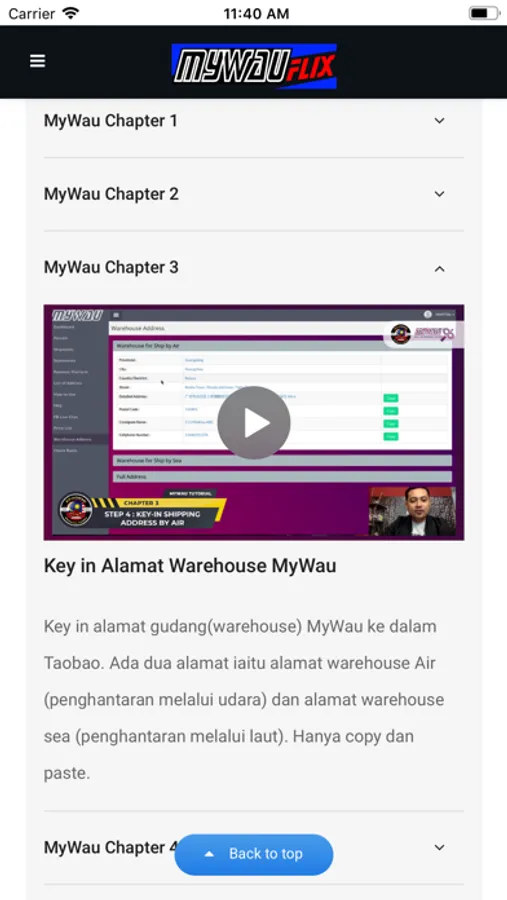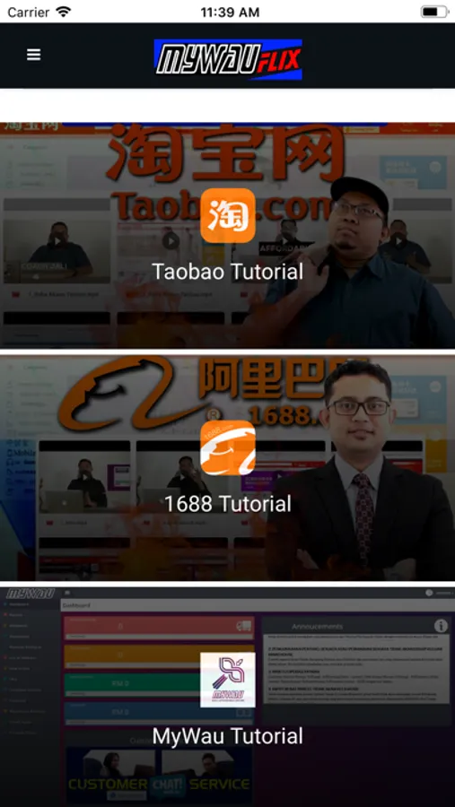 MyWau Flix is an application that provides content for educational purposes that help people to buy from Taobao and 1688 website and also using MyWau shipping service. MyWau Flix are targeting any individuals that has interest in business area and it's FREE.