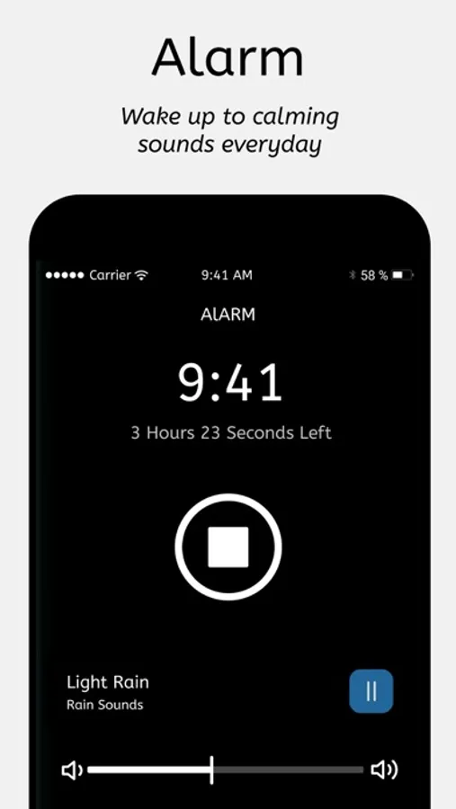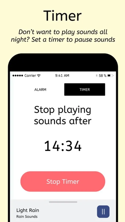 Once you fall asleep, you don't want the sleep sounds to play all night, right? In Sleep Z you can set a timer for a proper amount of minutes or hours that you want to play the sounds for.