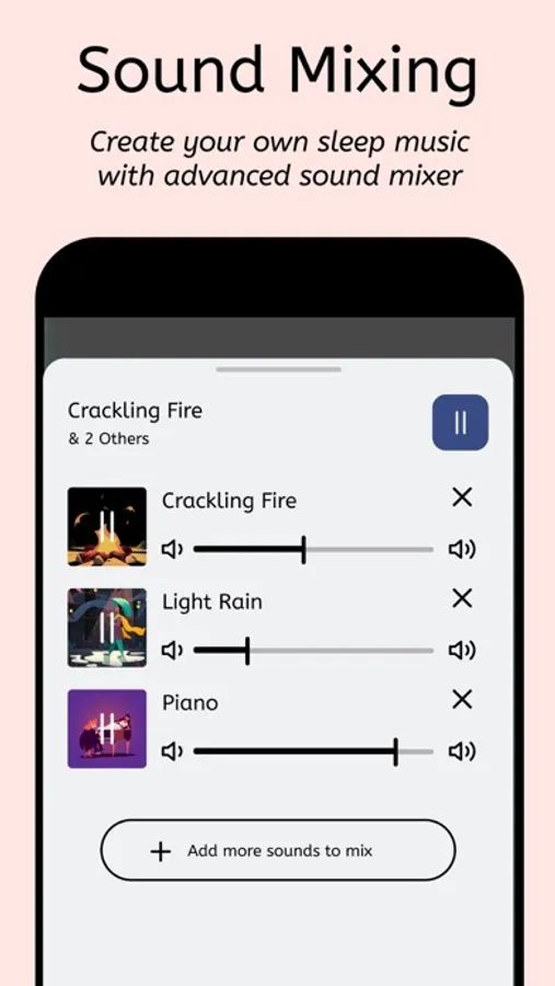 You can create your own sound mix using various sounds and setting a different volume level for each. Cool, huh?