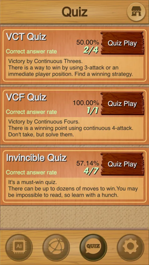 - Many different types of quizzes are available, including VCT, VCF, Invincible.