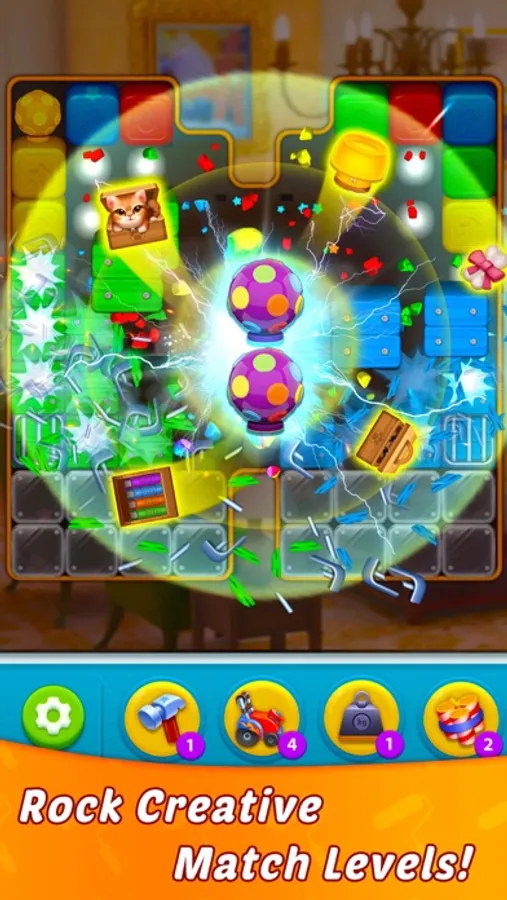 You can create tons of powerful boosts, make magic combos to blast and crush the crafty match levels. Think carefully about the strategies when blast the cubes of the furniture accessories, especially those puzzles with tricky traps and obstacles. It brings you strong blasting feelings when blast the color cubes by solving the match puzzles derived from those whacky elfin furniture.