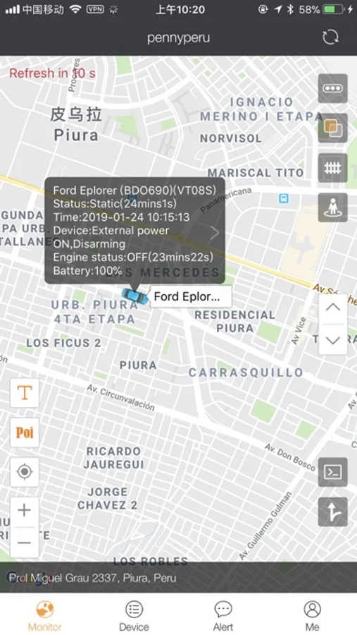Aplicación para ubicar en Tiempo Real todo tipo de vehículos monitoreados por Global GPS Perú S.A.C.