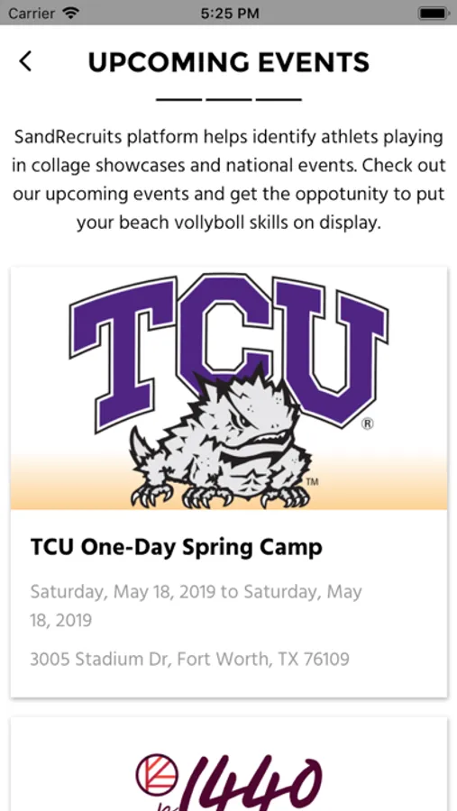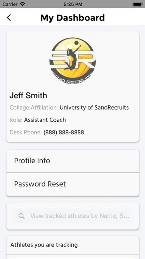 SandRecruits is the leading beach volleyball database for College Coaches to find athletes . Athletes sign up for a membership and populate their profile with data, photos, and videos. When an athlete is wearing their unique SandRecruits# at tournaments, coaches can easily find their profile via our mobile app and learn more about them. Our College and Player databases help coaches and athletes learn more about each-other, leading everyone to the perfect recruit.