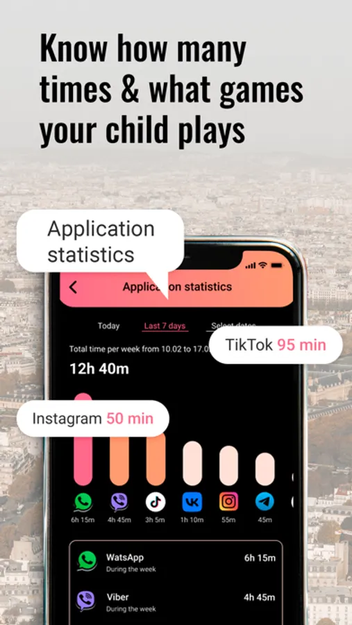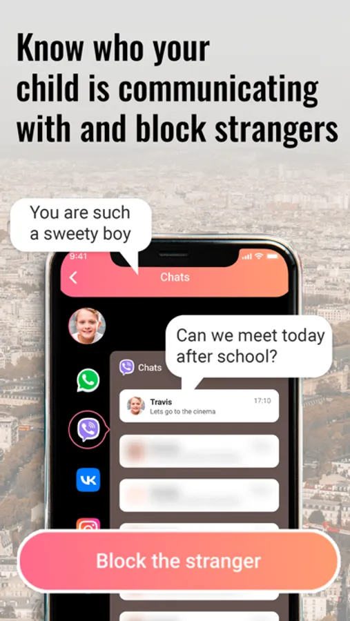 Enable parental control over messengers like WhatsApp, Viber, Facebook, and Instagram for peace of mind.