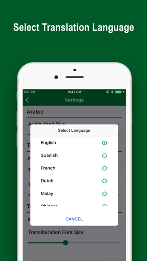 1 – Quran Translations in 13 Languages. This mp3 Quran Al Kareem application is available in 19 popular languages. So besides listening the Quran e Kareem in MP3, you can read it in English, Urdu, Malay (Quran Bahasa Melayu), Indonesian (Terjemahan Al Quran Bahasa Indonesia), , Italian, Bangali (Quran Bangla) , Chinese, Persian, Dutch, Persian, Turkish, Spanish (Corán en Español), and Hindi.