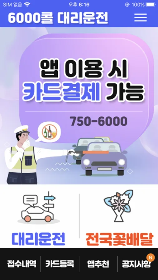 진주 6000콜 대리운전 고객 전용 어플입니다.