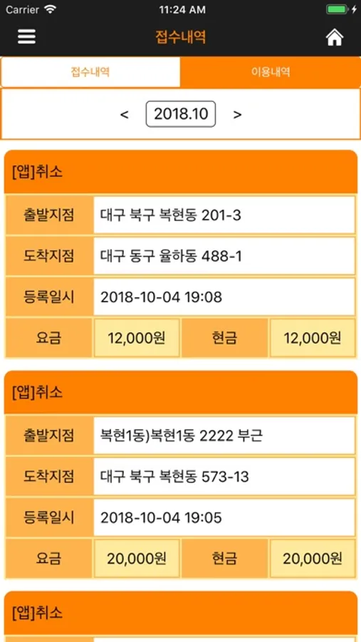 해당 어플을 사용하여 과거부터 현재까지 대리 요청한 내역을 확인 해 볼 수 있습니다.