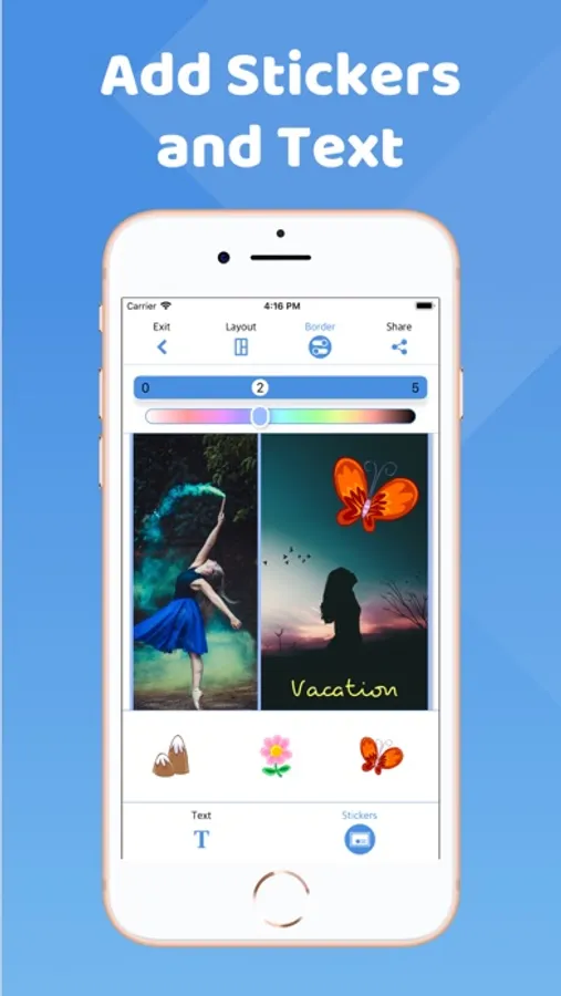 Stickers are a fun way to be creative and enhance your photo collage. Choose from a wide variety of stickers and make your photo collages pop!